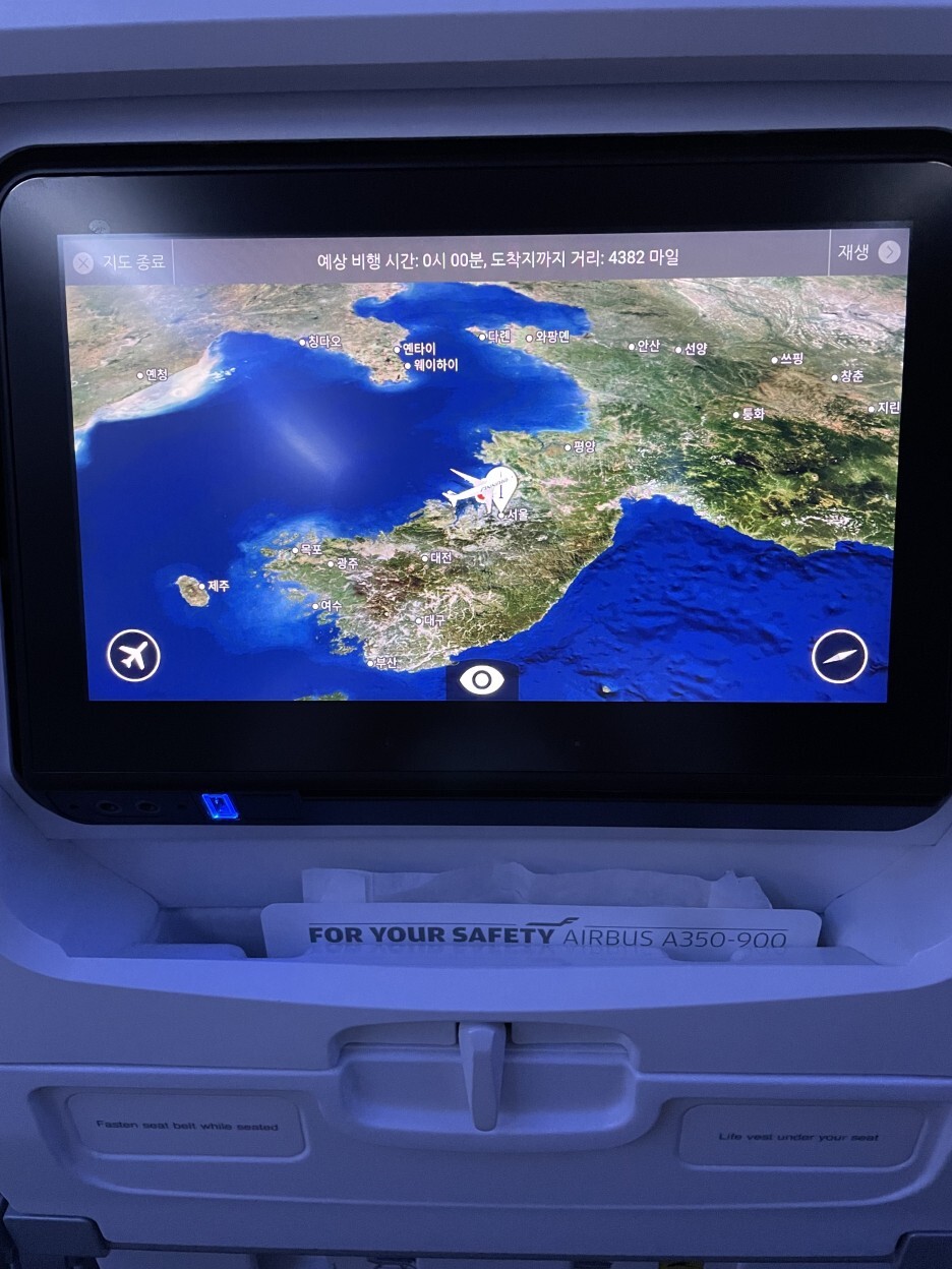 예상 비행시간, 현재 위치, 비행기 위쪽 아래쪽 상황 실시간으로 볼 수 있어서 재밌었다